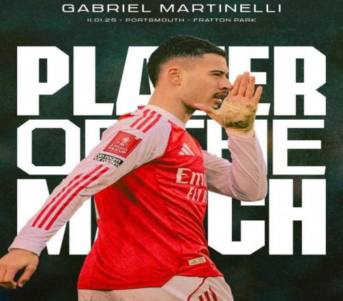 阿森纳官方宣布,马丁内利在赛后被阿森纳球迷票选为本场比赛的MVP的奖励。